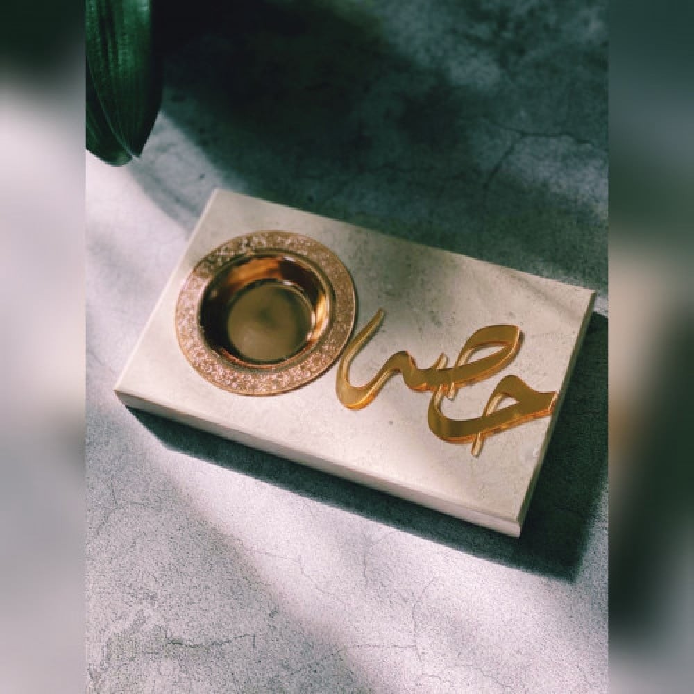 مبخرة الرخام الطبيعي• تميز ب الأناقة و الفخامة و اضف لمسة رائعه لديكور منزلك.• مبخرة الرخام الطبيعي مصنوعة من اجواد انواع الرخام و تتميز بالاسم المصنع من مادة الأكريليك الذهبي لتضيف لمسة ذهبية للمبخرة.